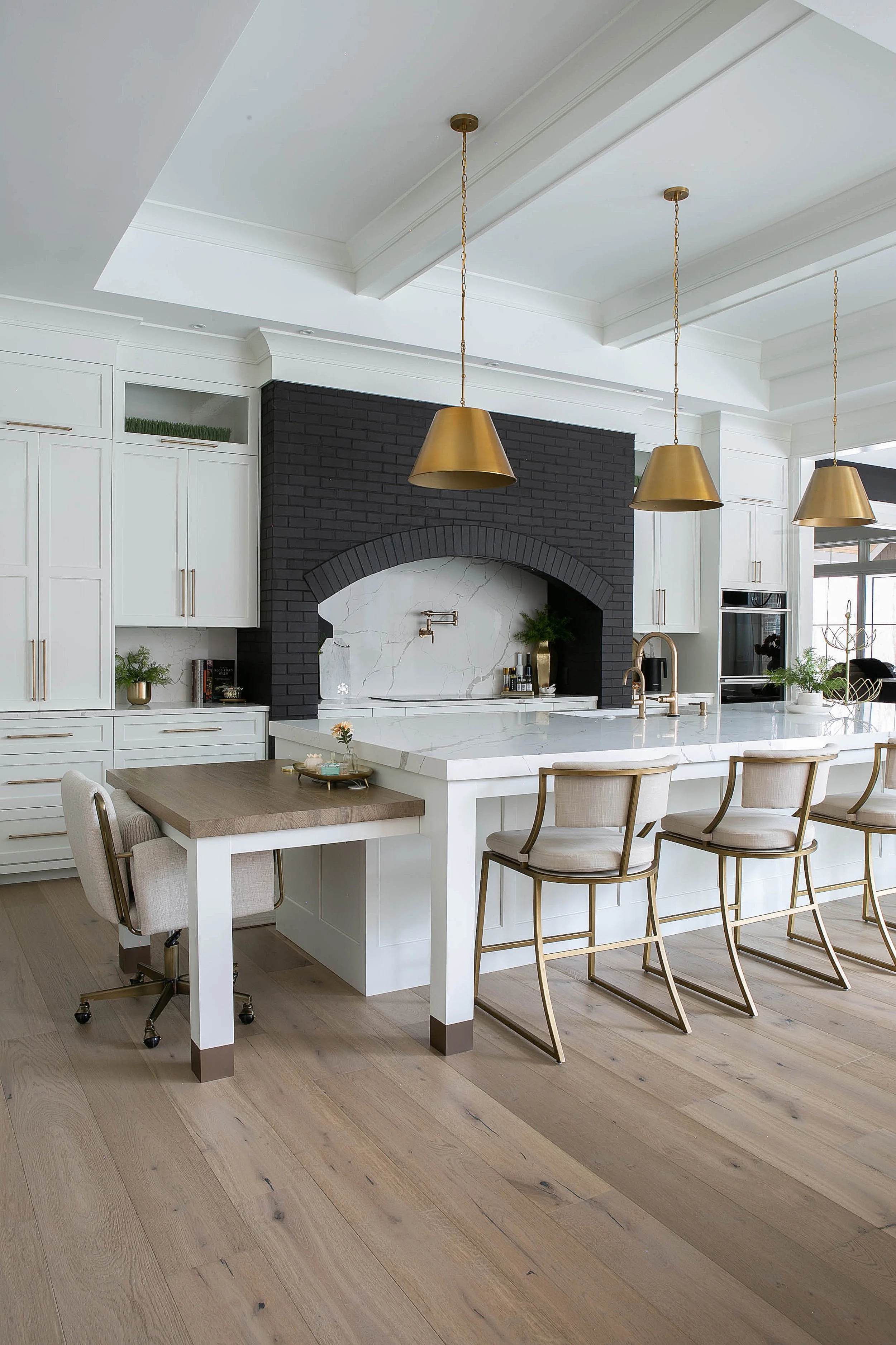 Beautiful, chic, a little bit of glam with high contrast black and white, this new build is a stunner. Our hard surface design included custom cabinetry throughout the home, tile, paint colors, wallpaper, lighting and more. This beauty was built by Premier Homes of Illinois.